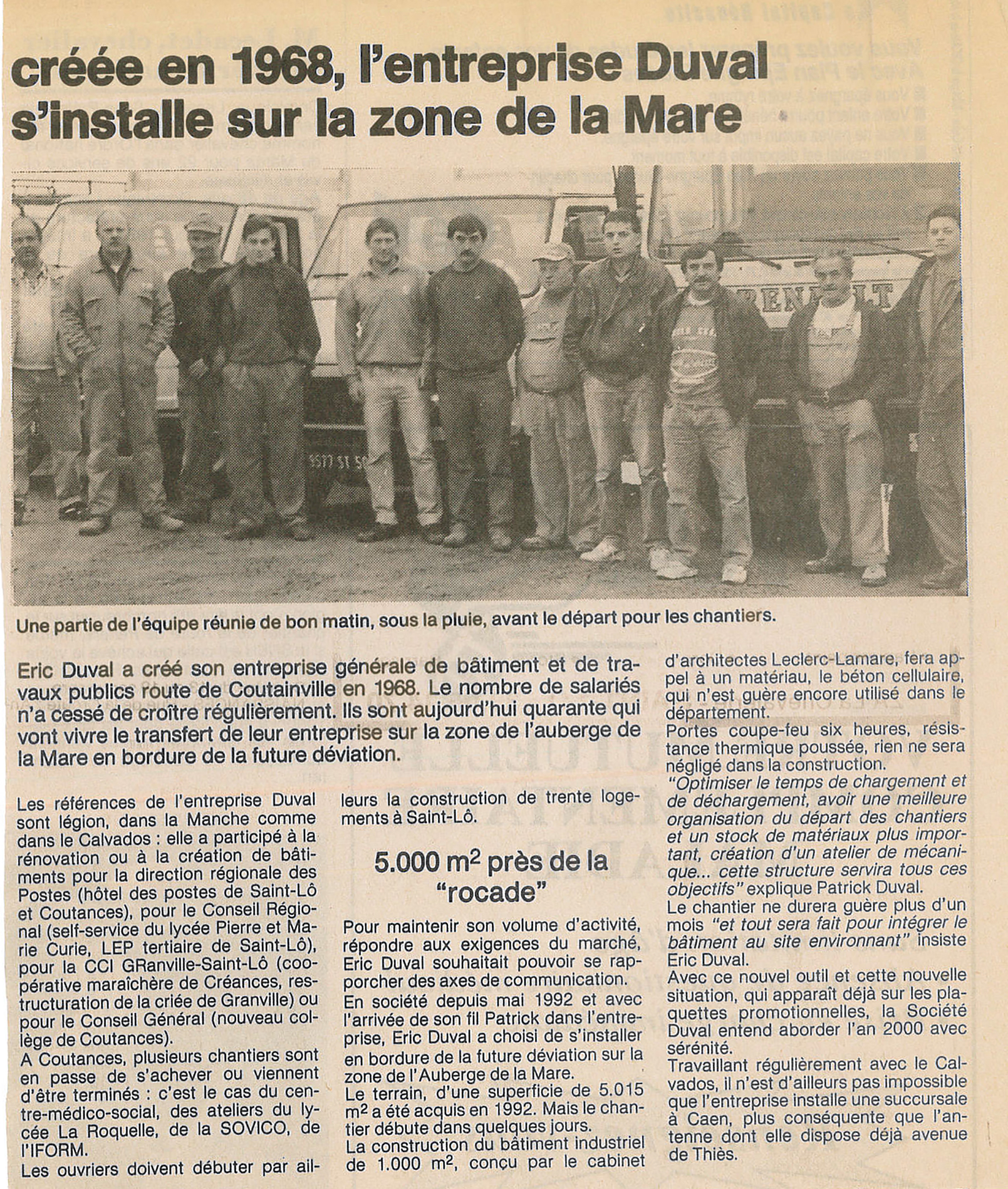 Créée en 1968, l’entreprise Duval et ses quarante salariés s’installent sur la zone de la Mare.